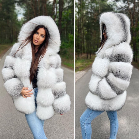 Luksusowe futerko z kapturem wykonane z niezwykle rzadkiej odmiany fińskich lisów Golden Island Shadow, certyfikowanych przez renomowany dom aukcyjny Saga Furs. To wyjątkowe futro wyróżnia się nie tylko swoją jakością, ale i subtelnym, eleganckim wyglądem, który doskonale łączy luksus z funkcjonalnością.